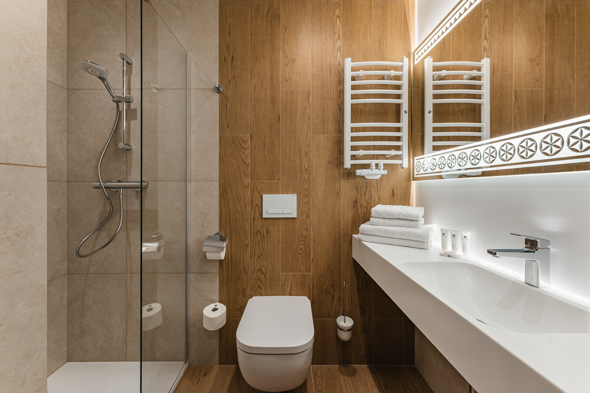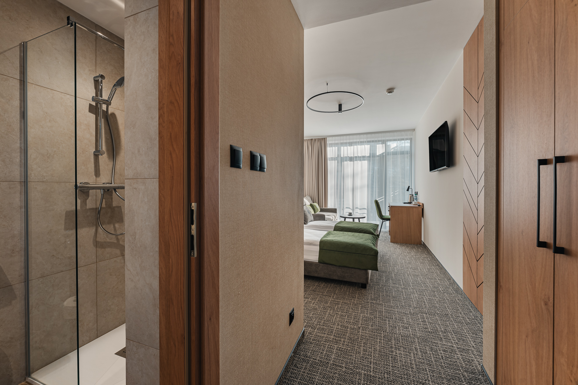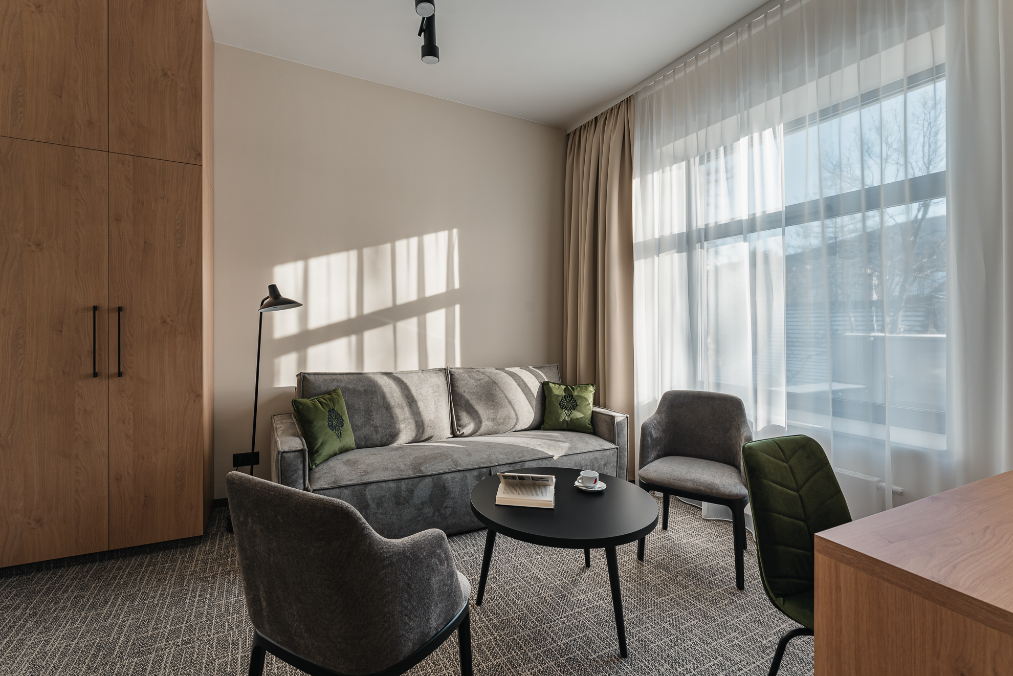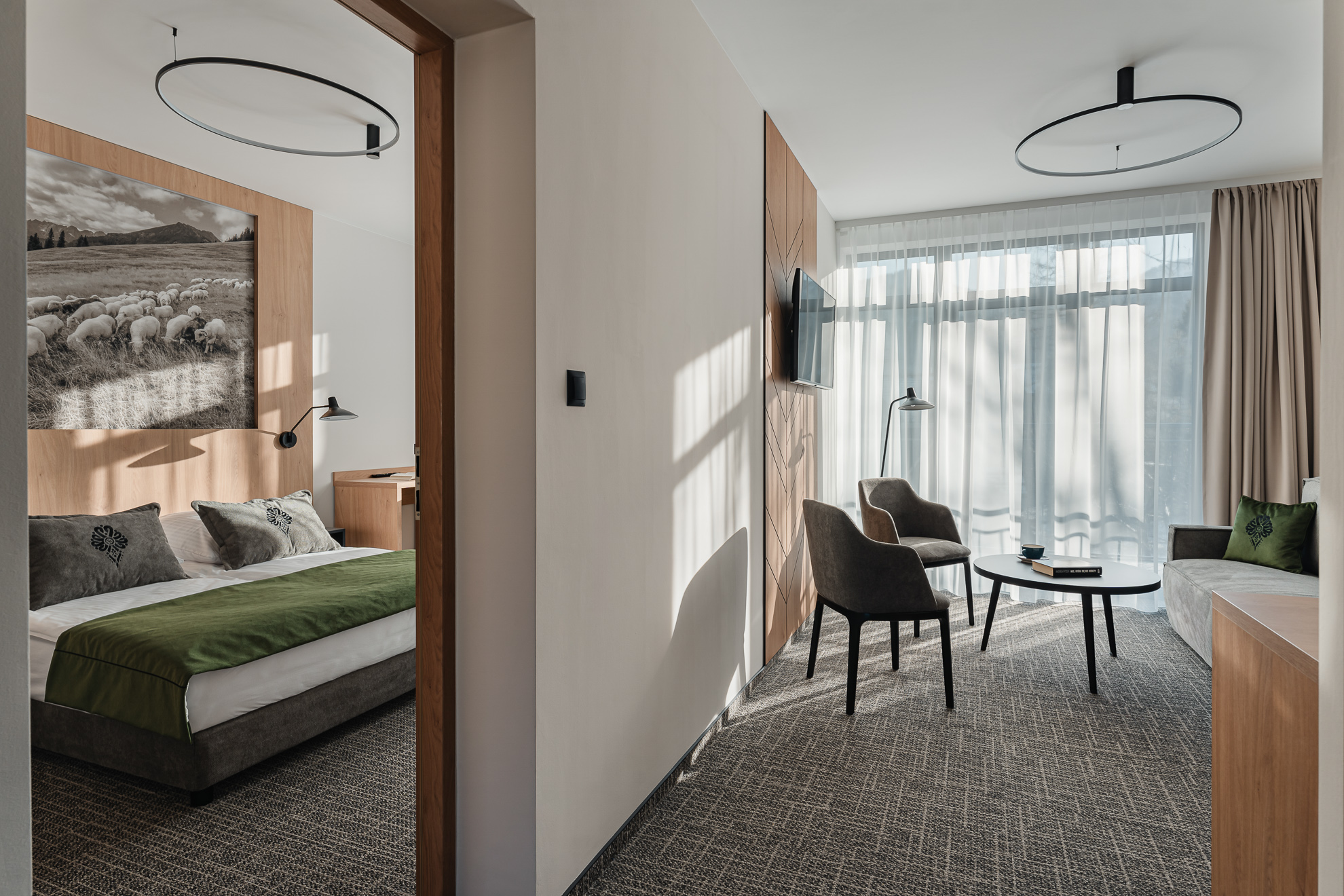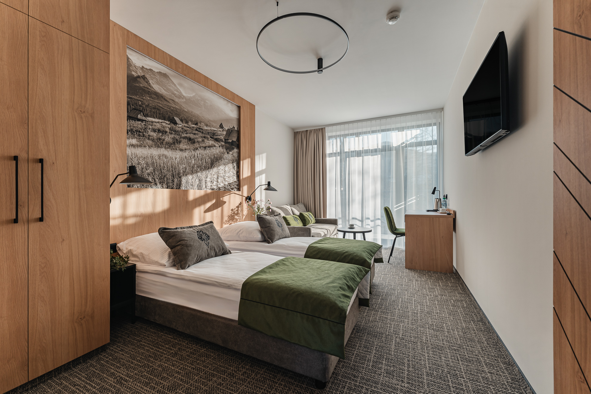 Przykład: Poniższe zdjęcia wykonane w Rewita Zakopane pokazują, jak szeroki kadr może podkreślić przestronność wnętrza oraz pokazać układ pomieszczeń.